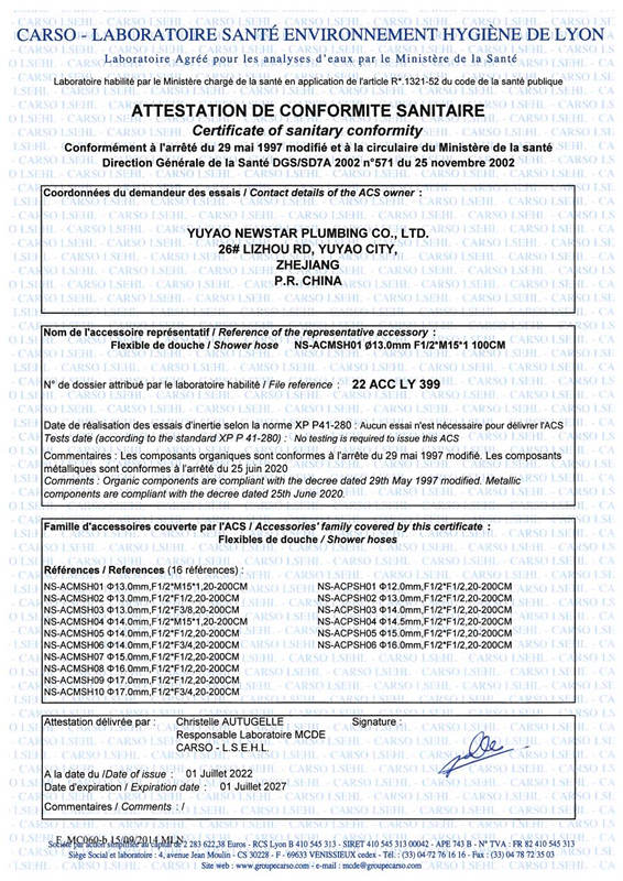Uzun bir geçmişe sahip olan FLEXHOSESOLUTION'ın 20 yıldan uzun bir süre önceki hikayesi bizi esnek hortumlar konusunda uzman yaptı. Bugün hortumlarımız sıkı kalite kontrolüne dayanan yüksek kaliteli ürünler haline geldi. Deneyimimiz ve bilgi birikimimizle zenginleşen yeni ürünlerin tasarımı. Tamamen teknik destek her zaman müşterilerimizin arkasındadır. 2000 FLEXHORTUMÇÖZÜMÜ Yuyao'da duş hortumu ve örgülü hortum üretimi konusunda uzmanlaşmış bir bireysel şirket olarak kuruldu. 2006 Şirket, Çin'in en büyük tesisat ihracatının yapıldığı Çin Tesisat Şehrine taşındı. 2010 Biz Tayvan ve Kuzey Afrika pazarında en büyük esnek hortum tedarikçisi haline geldi ve giderek en büyük yerel sıhhi tesisat firmasının istikrarlı tedarikçisi haline geldi 2012 CE (EN1113, EN13618) onaylı ACS BV CESMEC, bir sonraki adım olarak DVGW'yi kullanacak. 2018 El duşları, duş başlıkları ve Shattaf dahil olmak üzere üretimimizi genişletiyoruz.